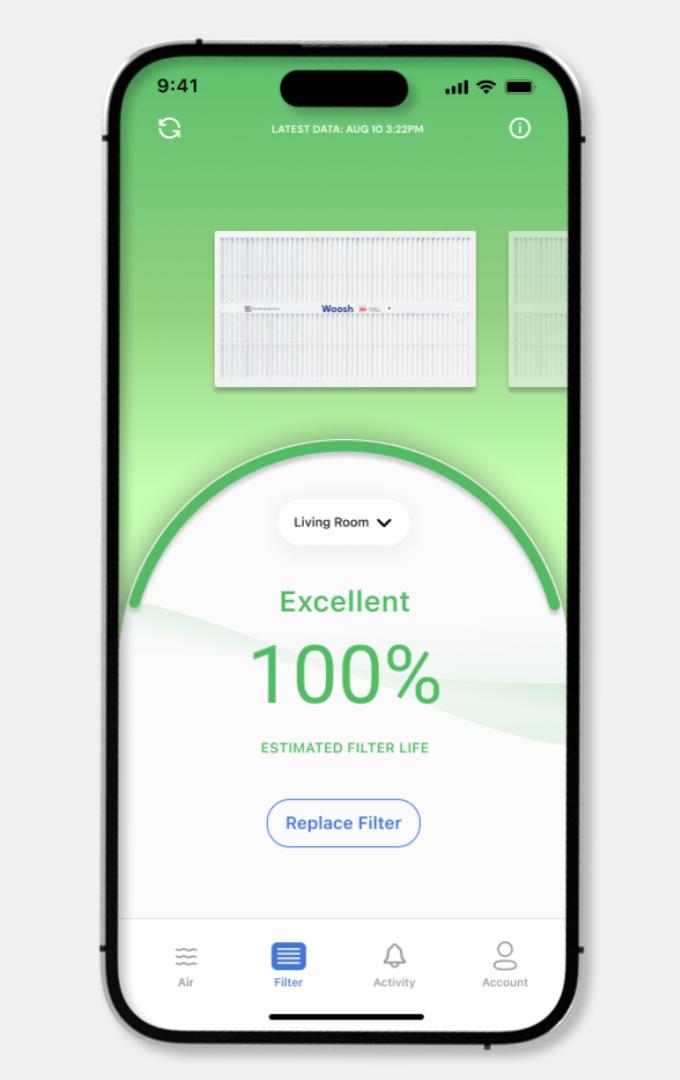 What's Woosh? It's a Smart Filter + Air Quality Monitor + Mobile App.