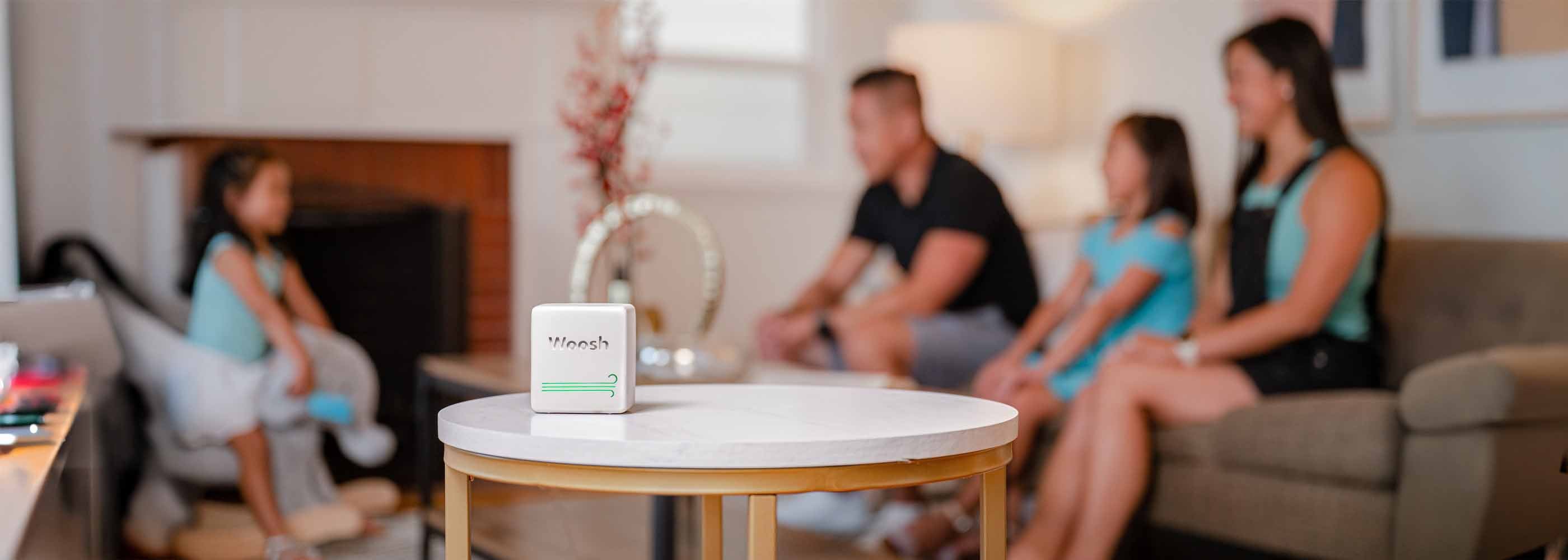 Woosh connects to popular thermostat brands (Sensi, Nest, Honeywell*, ecoBee and more). When our Air Quality Monitor detects a drop in air quality, your smart thermostat jumps into action and automatically activates the HVAC fan, circulating cleaner, filtered air throughout your home.