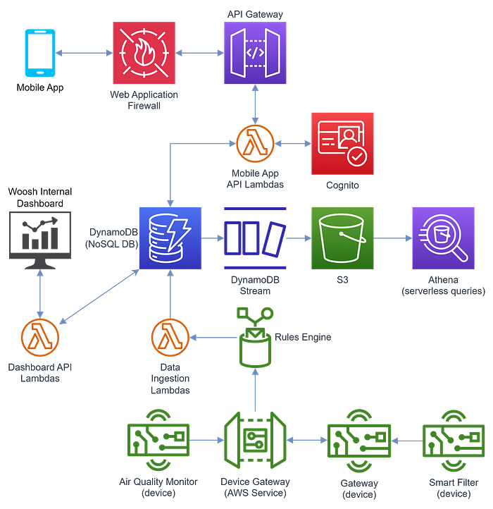 Our hardware and mobile app are only two things customers get to see. We are extremely happy with, and proud of, our cloud architecture. It’s the hidden glue that keeps Woosh together. It is reliable and secure. Our design choices reduce the operational load on the engineering team so we are able to focus on delivering great new features for our customers.
