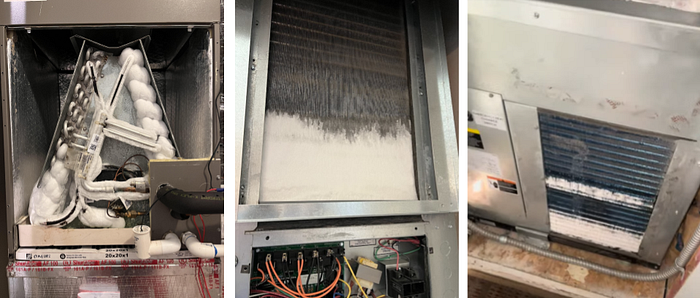 When evaporator coils become a block of ice, the HVAC system can’t keep the rest of the home cool. The block of ice physically prevents air from moving through the system. Left unaddressed, frozen coils can also damage the compressor, one of the most expensive parts to repair or replace. The compressor can overheat as it tries to maintain system pressure despite ice buildup, which can lead to mechanical failure. Frozen coils can put strain and do damage to one of your home’s most expensive investments which is why it is a critical issue that must be addressed quickly.